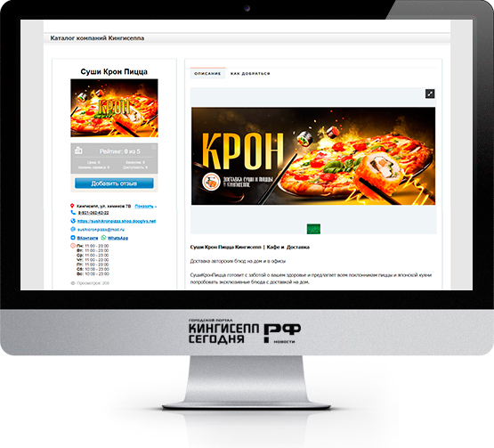 Мы предлагаем размещение карточки Вашей компании в «Каталоге компаний» на портале и в мобильных приложениях AppStore и Google Play «Кингисепп-сегодня.рф». Благодаря положительной репутации и систематичному наполнению контента, поисковые системы Яндекс и Google быстро индексируют информацию, добавленнуюв каталог. В результате чего Ваша карточка, в «Каталоге компаний», сможет привлечь большую часть аудитории, и вызвать интерес к Вашему продукту или услуге. т.д.