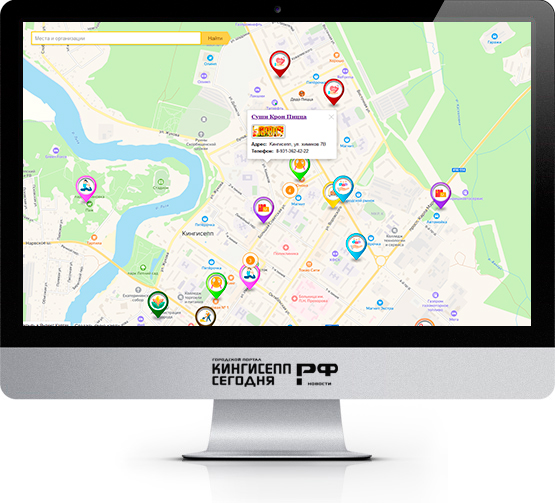 Максимизируйте свою видимость - разместите свою компанию на интерактивной карте на главной страницепортала «Кингисепп-сегодня.рф» и дайте клиентам множество способов связи: ссылка на ваш сайт,социальные сети, мессенджеры! Посмотреть пример »