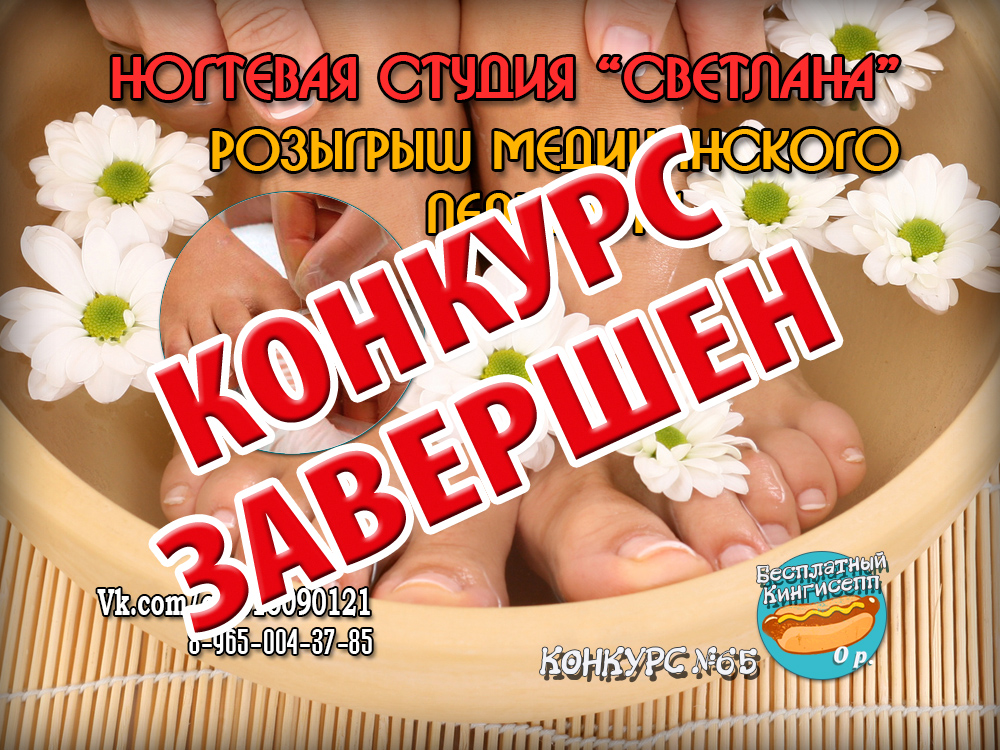 проводит розыгрыш сертификата на бесплатный медицинский педикюр.