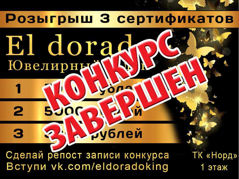 Ювелирный салон «Эльдорадо» при поддержке группы «Бесплатный Кингисепп» проводит розыгрыш 3 сертификатов!
