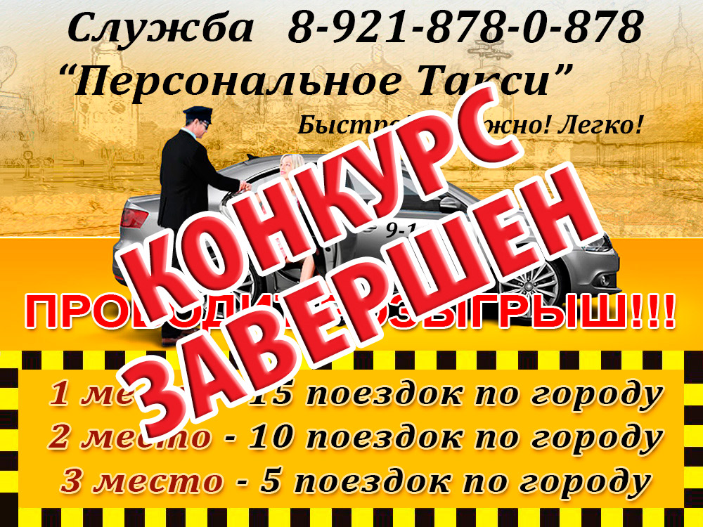 Служба «Персональное Такси» при информационной поддержке портала Кингисепп-сегодня.рф проводит розыгрыш!