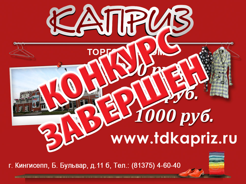 ТД «Каприз» при информационной поддержке портала Кингисепп-сегодня.рф проводит розыгрыш!