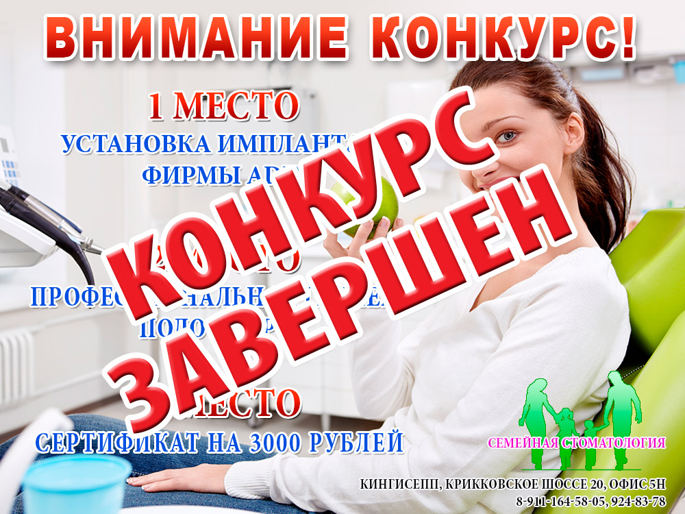 «Семейная стоматология» при информационной поддержке портала Кингисепп-сегодня.рф проводит розыгрыш!