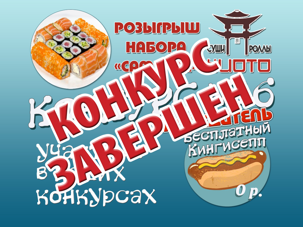 Разыгрывает набор «Самурай»: Филадельфия лайт, Калифорния с авокадо,ролл с лососем,огурцом.