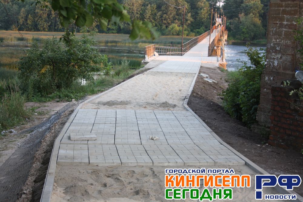 Сейчас в разгаре строительные работы у победовского моста, их ведет компания ООО «СК «МорПитерСтрой», которая делала улицу Доронина в прошлом году. Здесь разравнивается место, делается подушка для укладки тротуарной плитки с бордюрами шириной 2,6 метров. Перед заходом на мост будет смотровая площадка, тоже с мощением 6х10 метров. После главного моста на острове — тоже мощение, после подхода к главному мосту будет сделано асфальтное покрытие на втором, малом мосту через протоку и залиты и обновлены ступеньки спуска на территорию Заречья и также обустроена смотровая площадка 3х4 метра. Прораб строителей Даниял Кагерманов проинформировал: