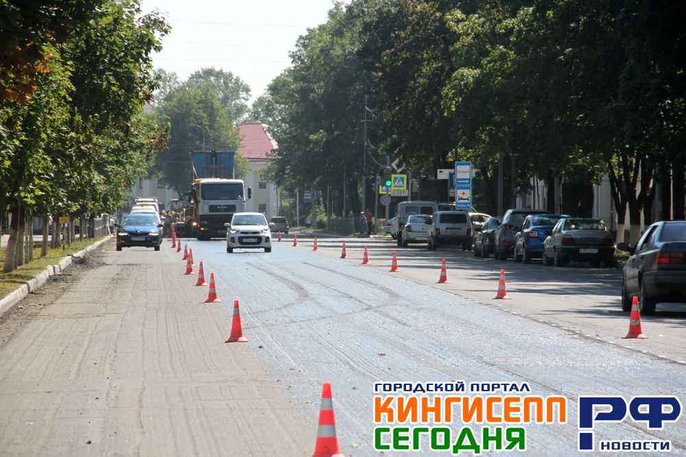 Лето, не омраченное затяжными дождями, — прекрасное время для работ, связанных с благоустройством территорий и дорожным ремонтом. Как раз такая погода стоит сейчас в Кингисеппе.