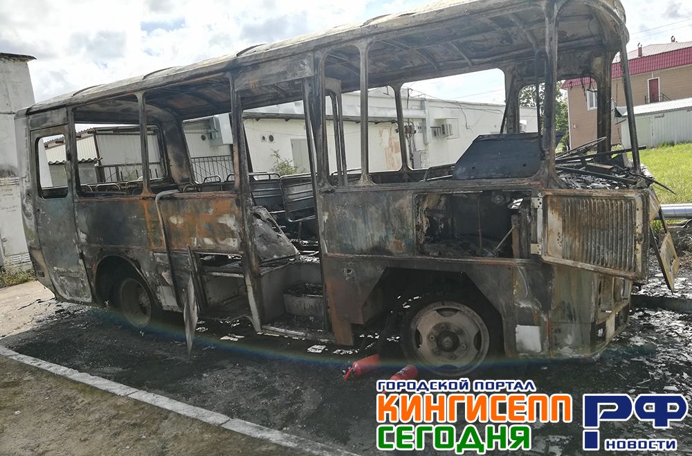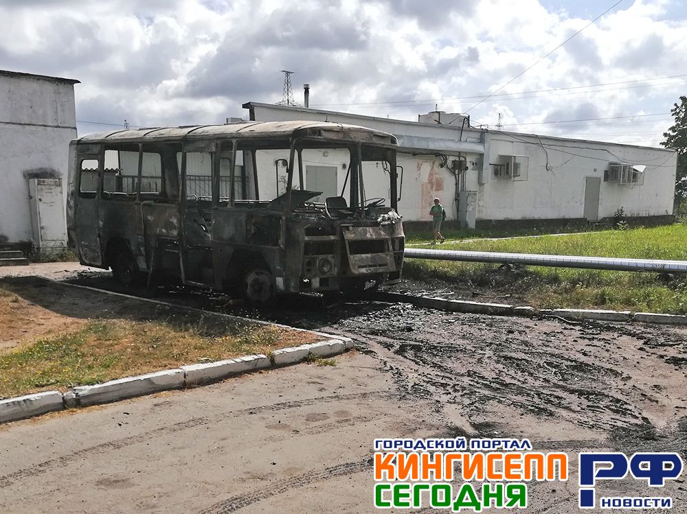 Сегодня утром в п. Кингисеппском произошло возгорание, предположительно, частного автобуса марки ПАЗ.
