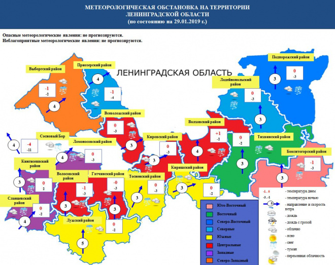 Во вторник, 29 января, в Ленобласти ожидается переменная облачность, небольшой снегопад, местами переходящий в метель.