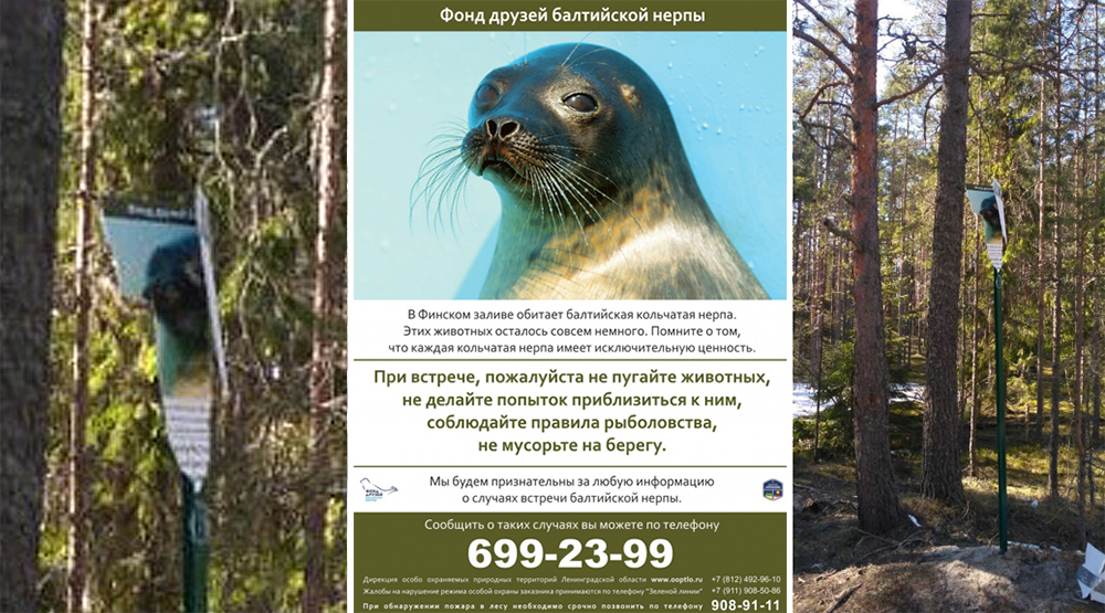 Как сообщили сотрудники "Фонда друзей балтийской нерпы", злоумышленник питает особенную неприязнь к предупреждениям о возможной встрече с балтийской кольчатой нерпой на берегу Финского залива.