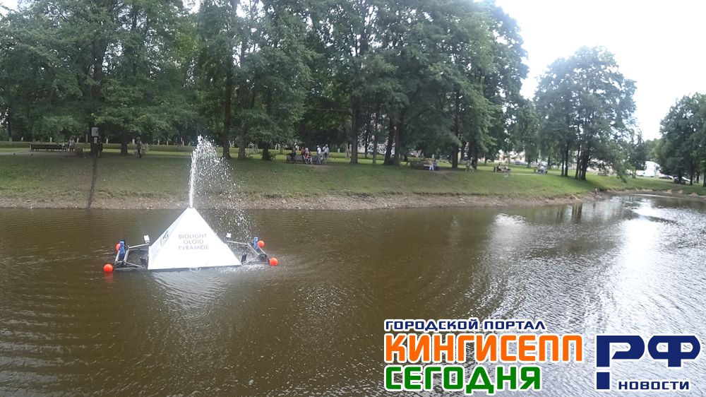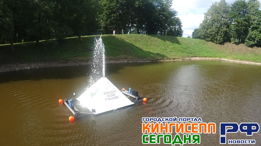 В настоящий момент уже действует установка по очистке воды. Она плавает и выполняет роль фонтана.