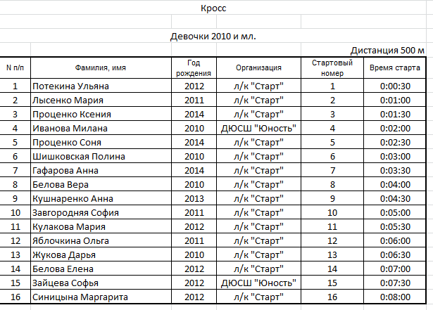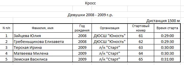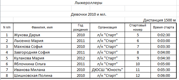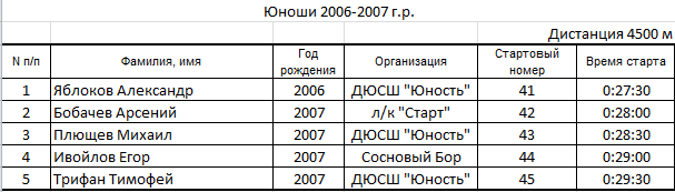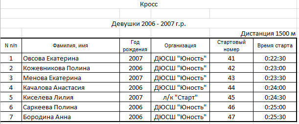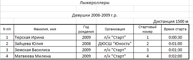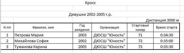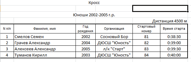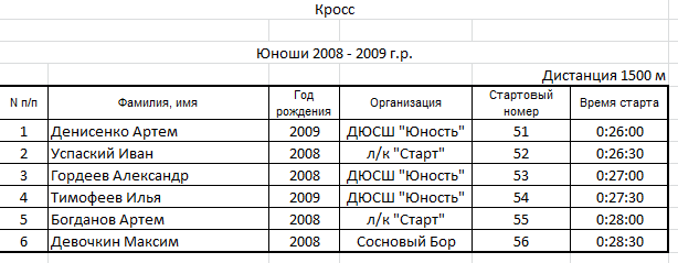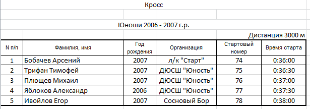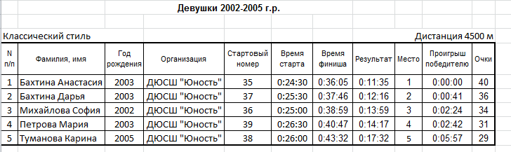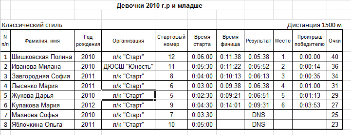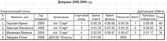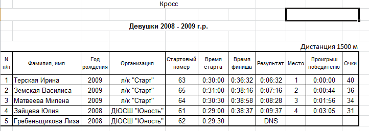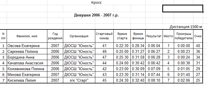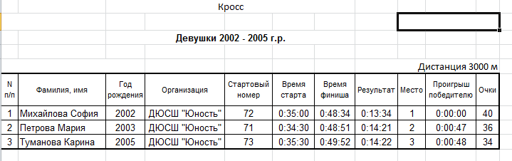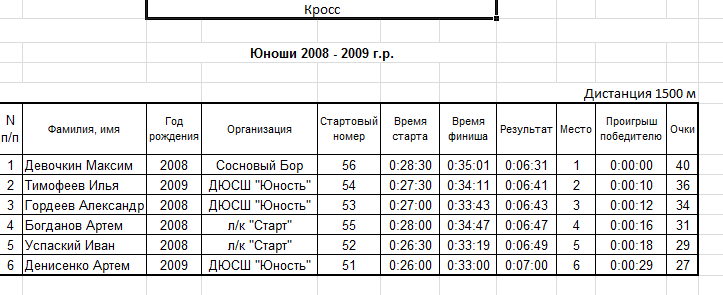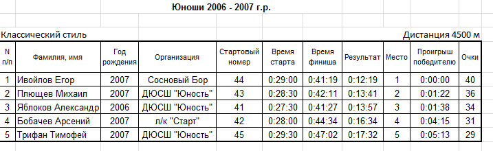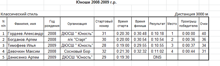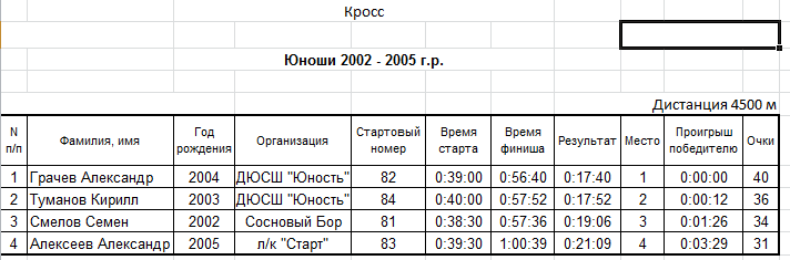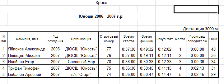 Результаты соревнования: