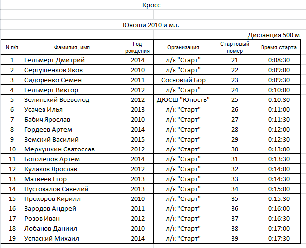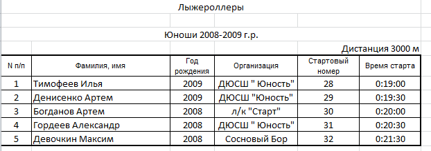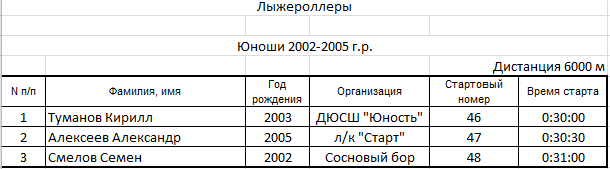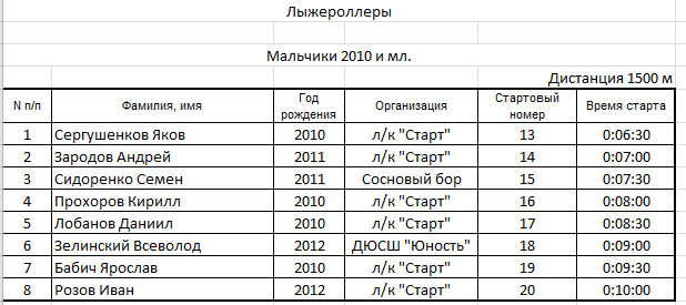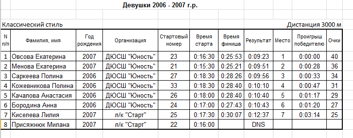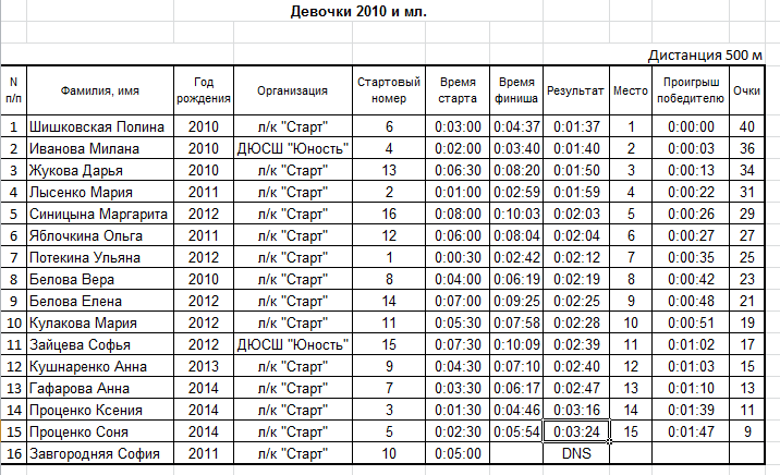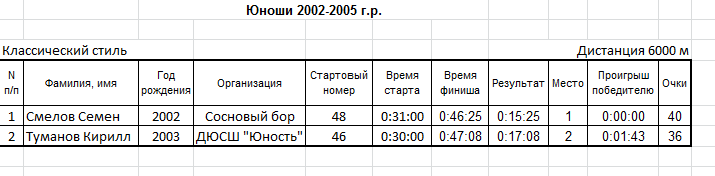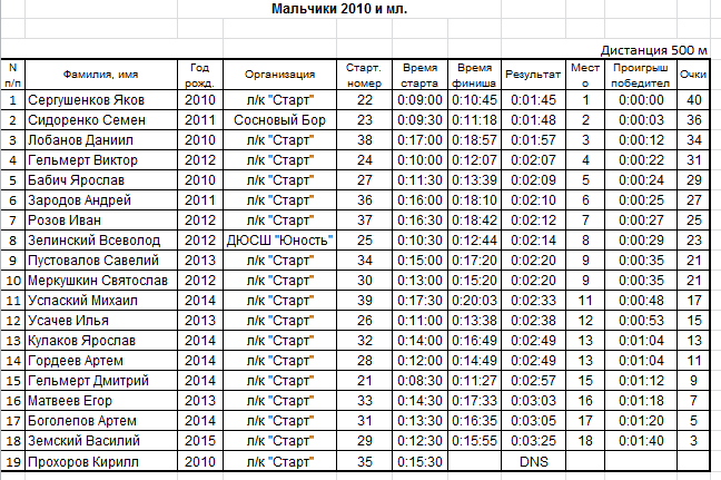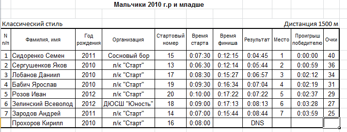 Результаты соревнования