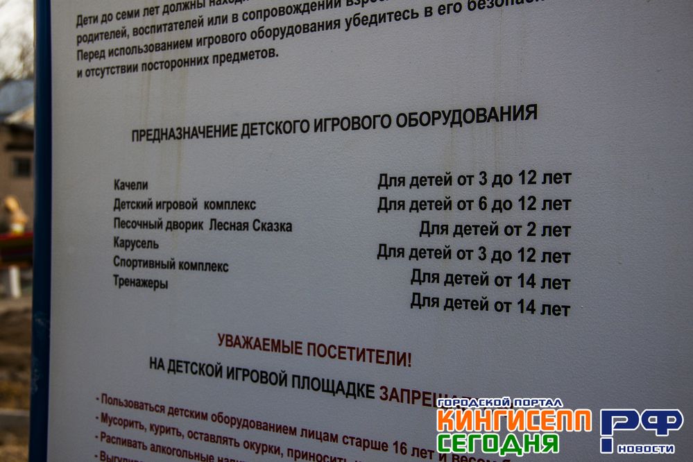 «Дети до 7 лет должны находится на игровой площадке под присмотром родителей, воспитателей или в сопровождении взрослых. Перед использованием игрового оборудования убедитесь в его безопасности и отсутствии посторонних предметов».
