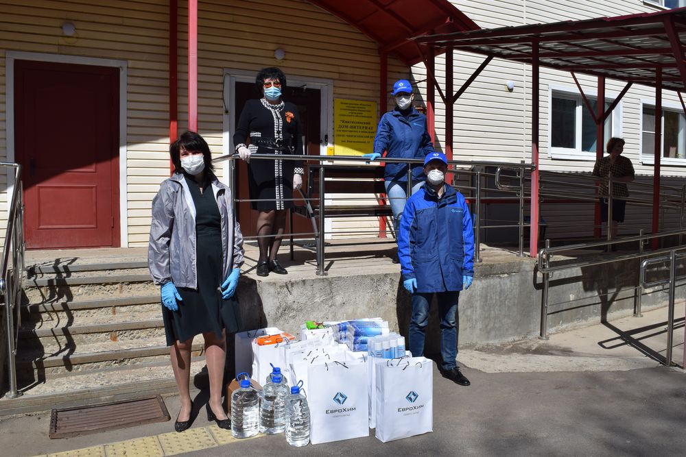 Накануне празднования Дня Великой Победы волонтеры компании Андрея Мельниченко «ЕвроХим» и представители ОНФ посетили ЛОГБУ «Кингисеппский дом-интернат» для престарелых и передали средства защиты и угощения для его постояльцев.