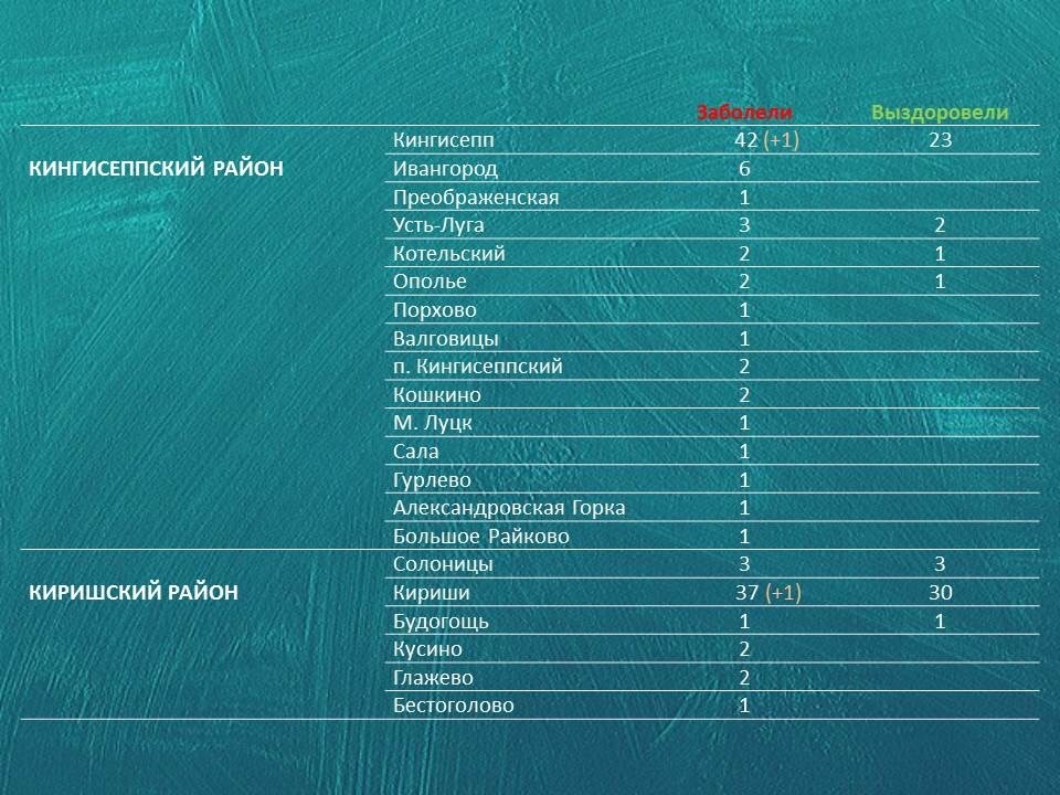 Оперативный штаб Ленобласти сообщает о 55 новых подтвержденных случаях заболевания коронавирусом. В Кингисеппе прибавился еще один заболевший.