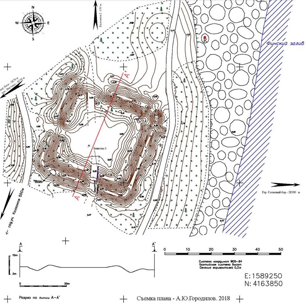 Топографический план южного редута. Съемка А.Ю.Городилова.
