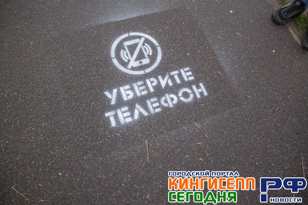 Такие надписи будут нанесены на тротуары во всех районах Кингисеппа, а также Ивангорода.