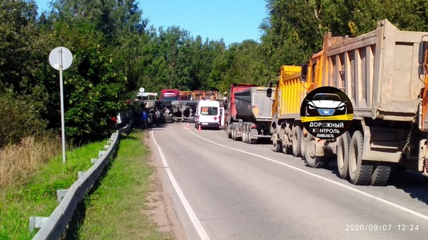 Информация о дорожной аварии появилась в соцсетях днем 7 сентября. По данным очевидцев, в деревне Валяницы Вистинского сельского поселения около часа дня перевернулся самосвал и заблокировал движение.