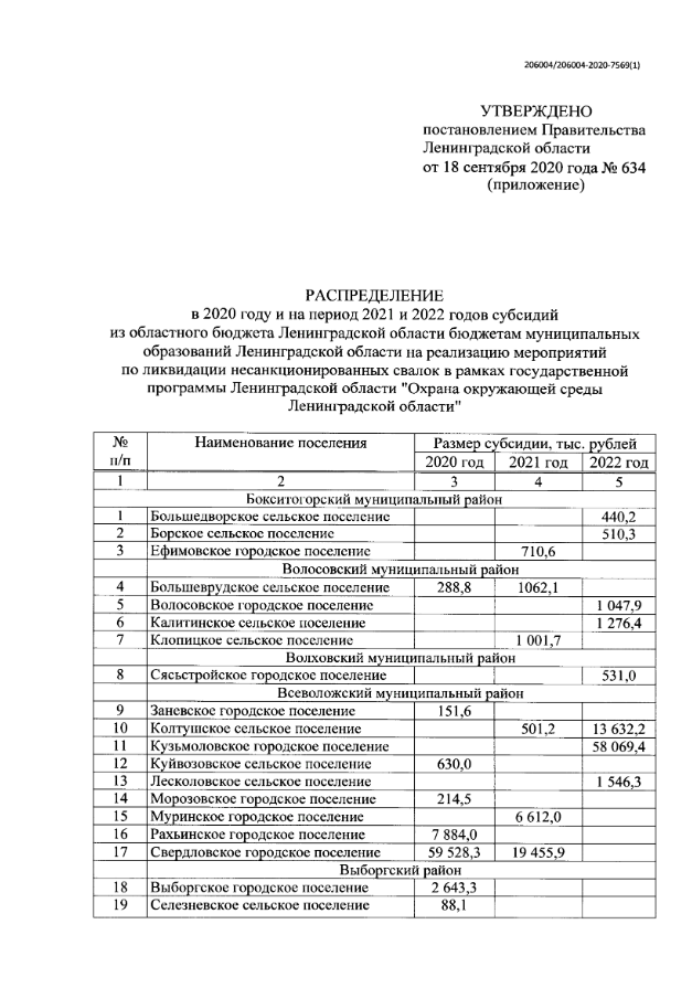 Согласно документу, подписанному 18 сентября, в 2020 году первый транш в размере 100 миллионов рублей разделят между 26 поселениями. При этом больше всех средств на ликвидацию свалок будет выделено Свердловскому поселению - (более 59 млн рублей), Котельскому (более 19 млн рублей) и Рахьинскому (более 7 млн рублей).