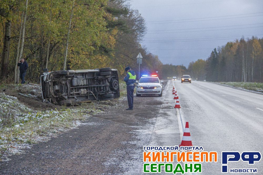 Около половины седьмого часа утра на 140 км водитель микроавтобуса Mercedes-Benz, следовавшего со стороны Ивангорода, на скользком дорожном покрытии не справился с управлением. Чудом миновав встречную полосу, зацепив обочину, микроавтобус завалился на бок.