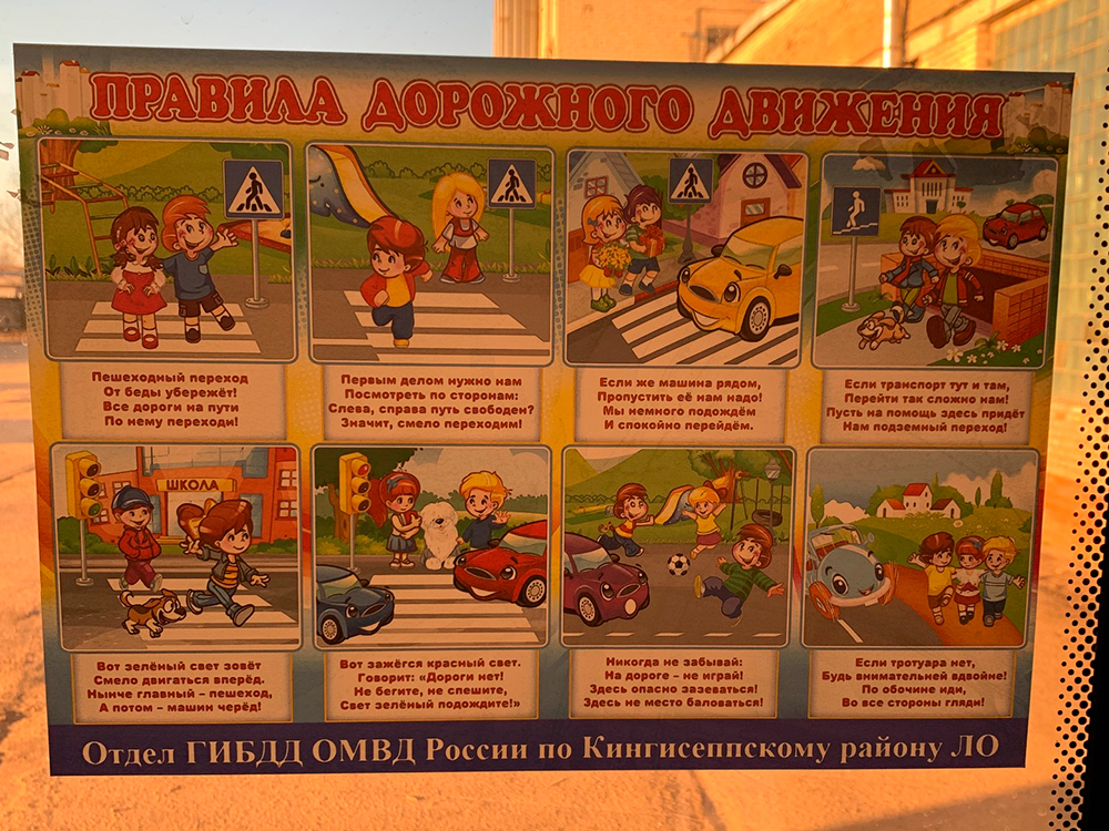 В период проведения профилактического мероприятия «Автобус», которое проходило на территории Ленинградской области с 1 по 7 декабря 2020 года, сотрудники ОГИБДД по Кингисеппскому району расклеили постеры по правилам дорожного движения в стихах для детей.