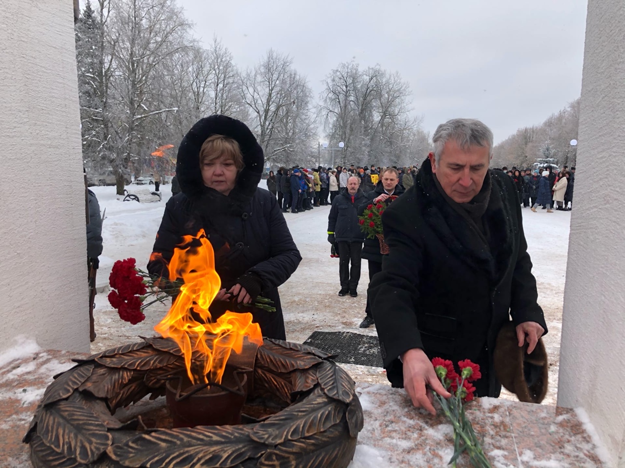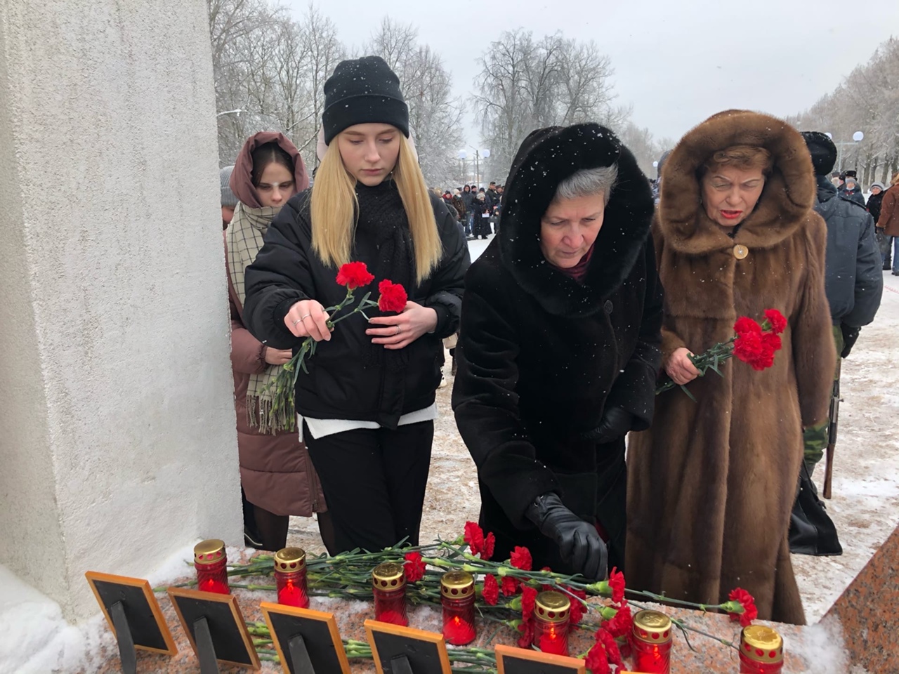 Благодарные кингисеппцы возложили цветы и венки к мемориалу «Журавли».