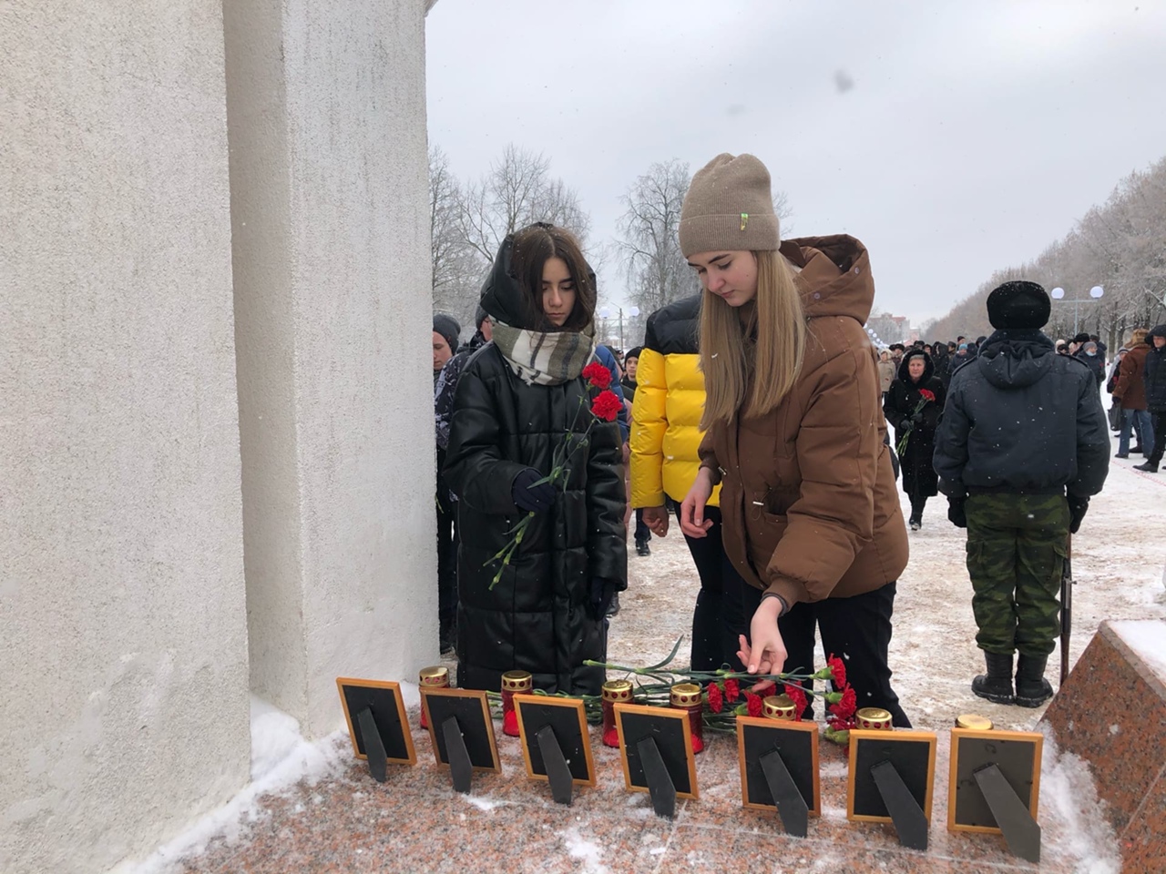 К мемориалу воинам, погибшим в мирное время - «Журавли» - почтить память героически павших соотечественников пришли ветераны боевых действий, родственники погибших солдат.
