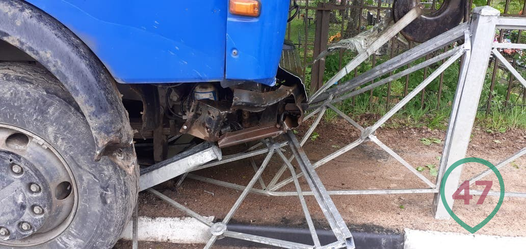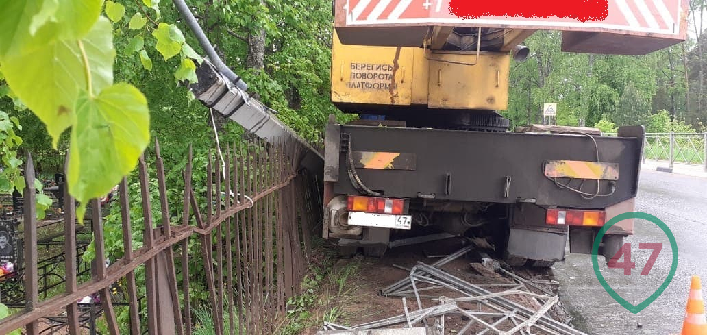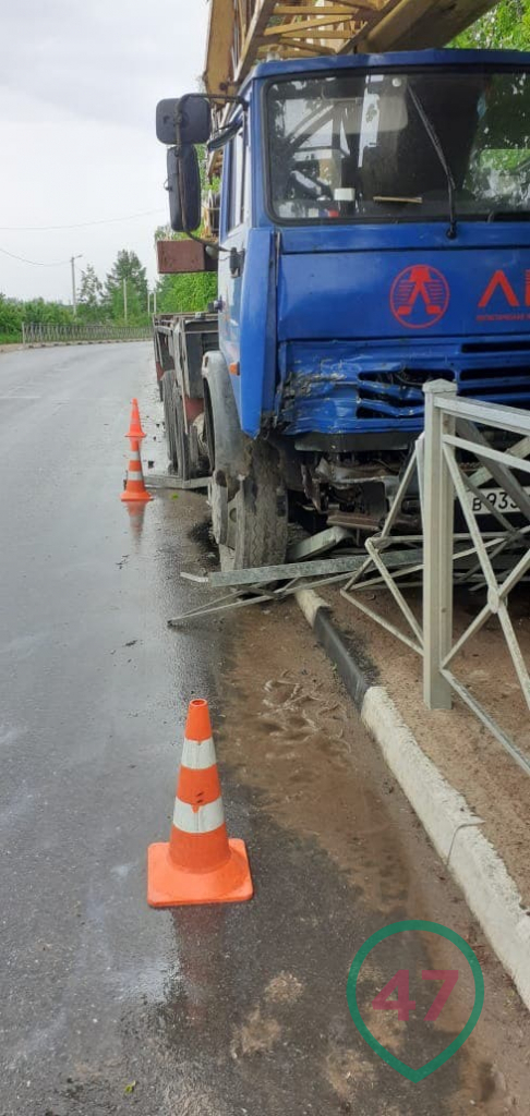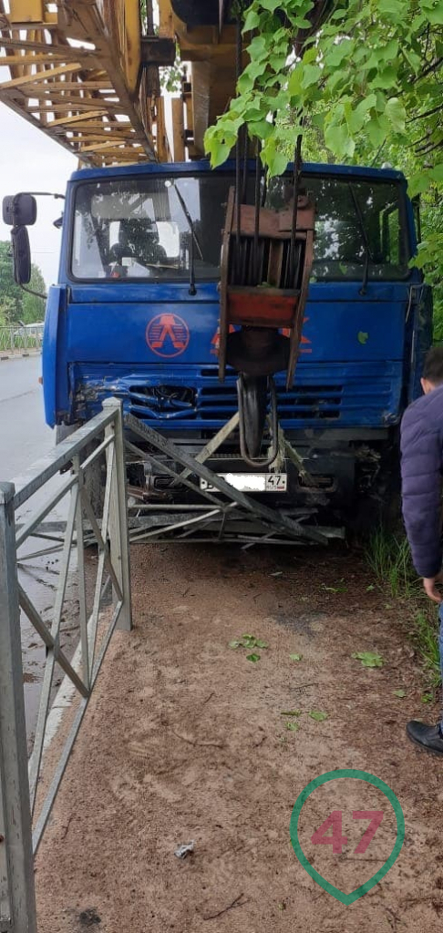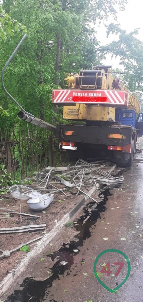 Около половины двенадцатого дня 26 мая на 56 километре трассы "Лужицы - Первое мая" в деревне Большое Кузёмкино автокран съехал с дорожного полотна и снёс металлическое ограждение на обочине. Остановилась машина только после того, как с корнем выдернула опору уличного освещения.