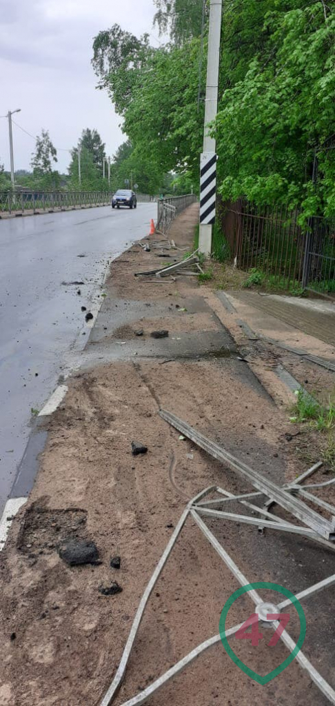 В ГКУ "Ленавтодор" сообщили, что снесены 50 метров пешеходных ограждений и столб освещения, установленные в прошлом году. Дорожники подсчитывают сумму причинённого ущерба.