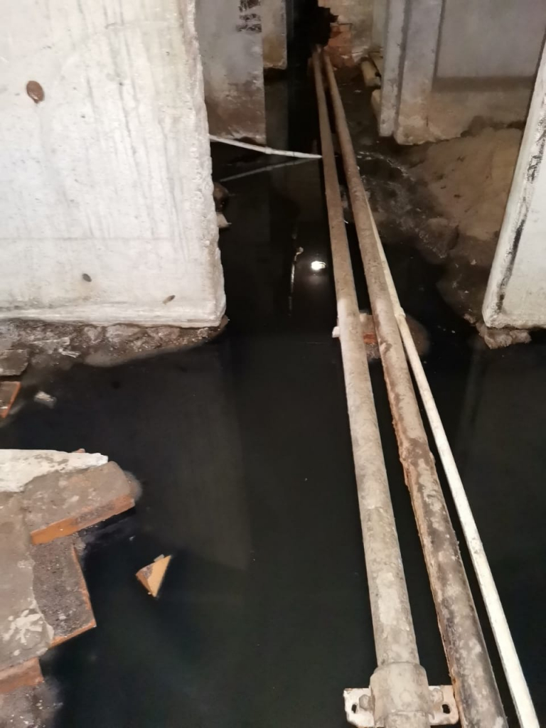 Как рассказали 47news местные жители, канализационные стоки заполнили подвал дома № 16 на Железнодорожной улице в Кингисеппе. С конца апреля помещение перенесло прорывы системы отопления и горячего водоснабжения. Лужи мутной жижи подходят к новым фановым трубам и источают соответствующий запах.