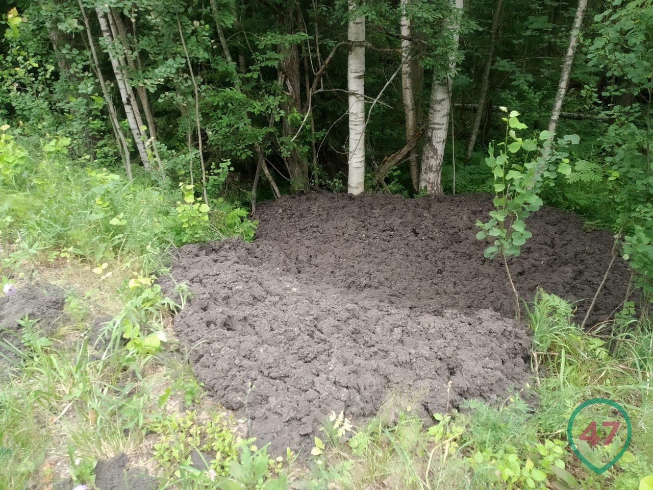 - Грузовики тут у нас курсируют постоянно, но получилось снять только одну машину именно с этим грузом. Сыпалось из кузова, а на съезде в лес лежит огромная полоса длиной метров восемь, шириной пять, это несколько тонн. Страшно пахнет фекалиями, долго рядом стоять невозможно, пока находился там, провоняла вся одежда и машина. Вонять будет годами, если не уберут, - рассказал 47news местный житель Виктор.