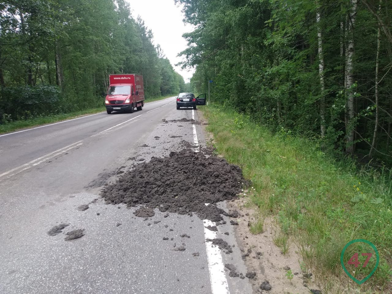Кучи смрада заметили 27 июня после проезда грузовика на участке между двумя деревнями в Кингисеппском районе, сообщает 47news.