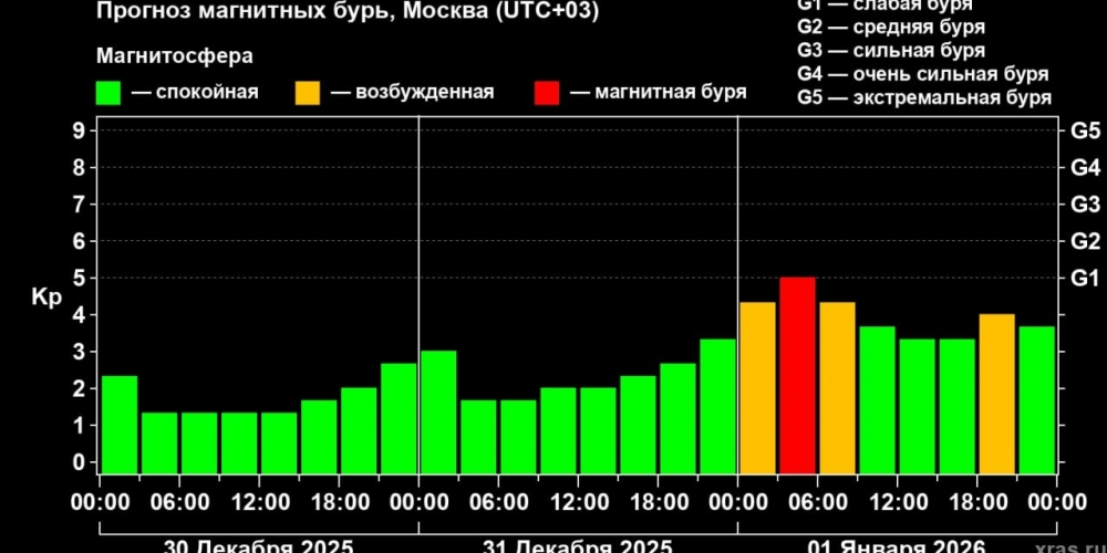 В новогоднюю ночь Землю ждут полярные сияния и слабые магнитные бури