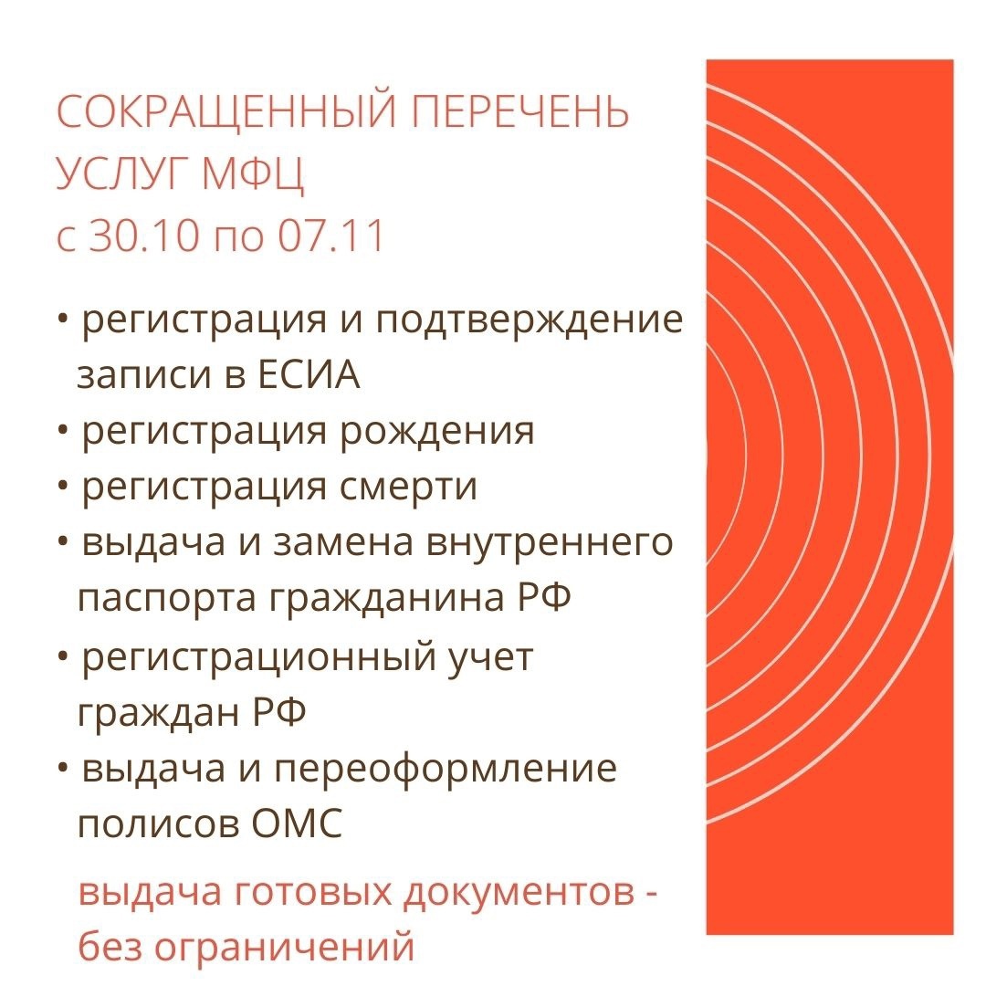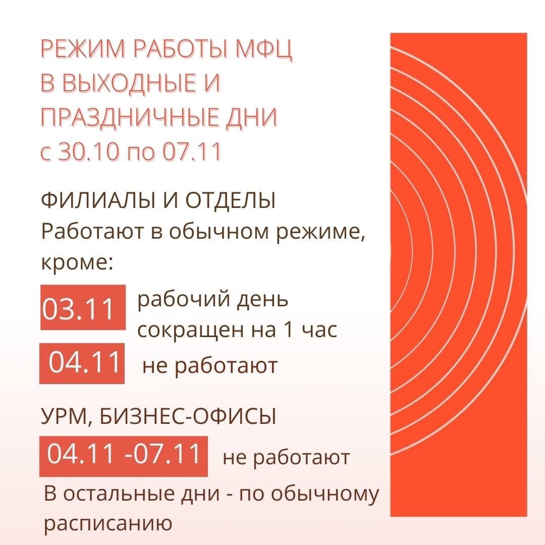 МФЦ: режим работы и перечень услуг с 30 октября по 7 ноября