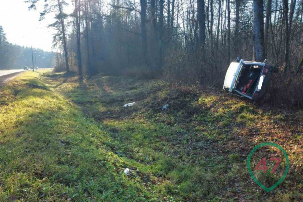 Водители двух автомобилей не справились с управлением и улетели с трассы в Кингисеппском районе