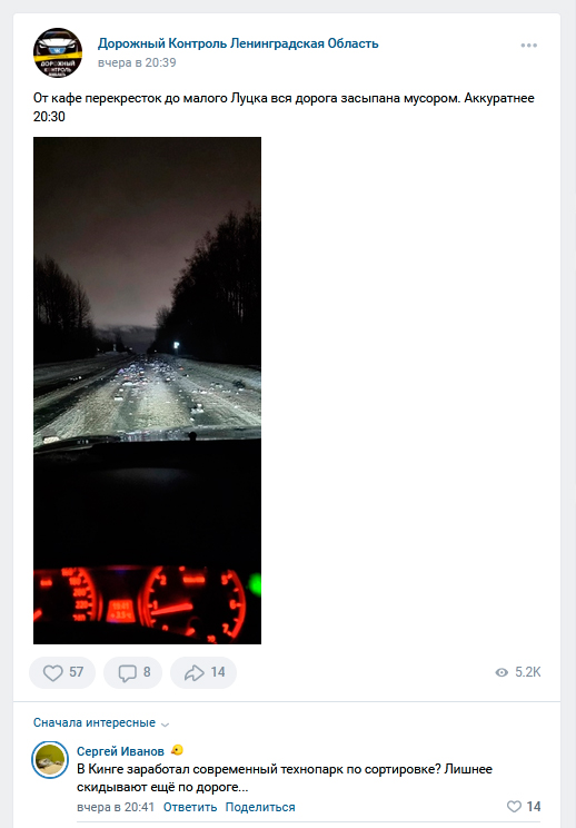 Скрин: паблик "Дорожный Контроль Ленинградская Область"