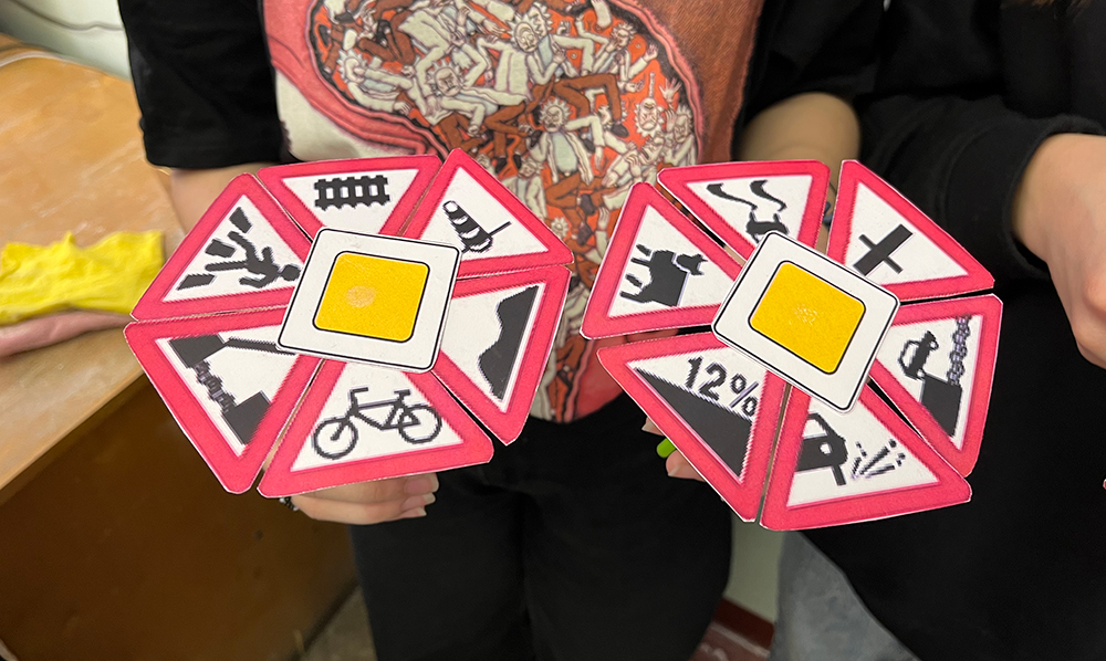Оригинальные подарки в виде цветочной композиции ЮИДовцы вручили мамам-водителям. Каждый лепесток выполнен из элементов дорожных знаков и призывает соблюдать Правила дорожного движения.