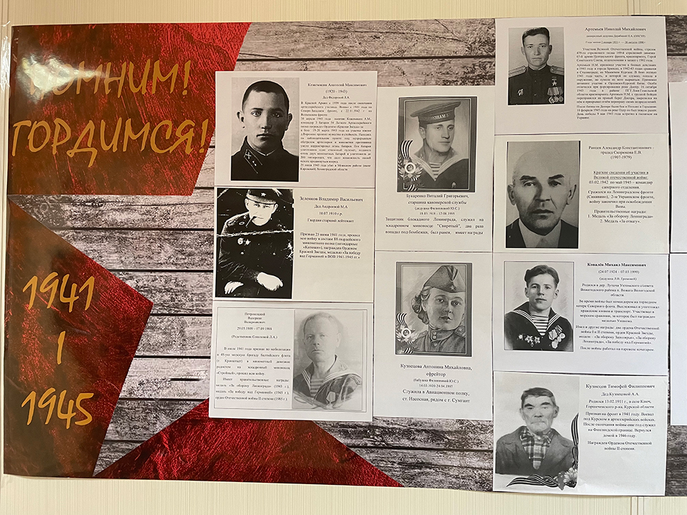Кроме того, в целях патриотического воспитания и в преддверии празднования Дня Победы кингисеппские таможенники оформили стенд «Стена памяти» - посвящённый родственникам, которые участвовали в Великой Отечественной войне.