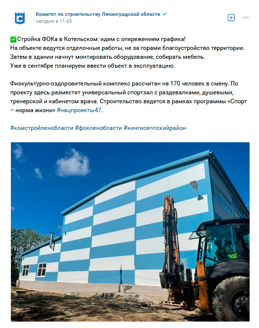 Источник: vk.com/Комитет по строительству Ленинградской области