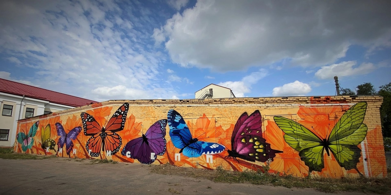 Художники из студии "Горгона" создали новый арт-объект. В этот раз талантливые сосновоборцы украсили старое кирпичное здание в Кингисеппе. Граффитисты оживили пространство в местном сквере изображением ярких бабочек. Результатом работы авторы поделились в социальных сетях. Об этом пишет 47channel.