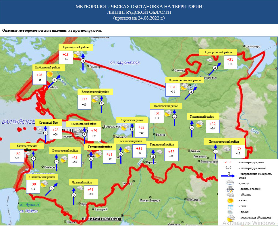В Ленобласти в среду температура воздуха составит плюс 32 градуса