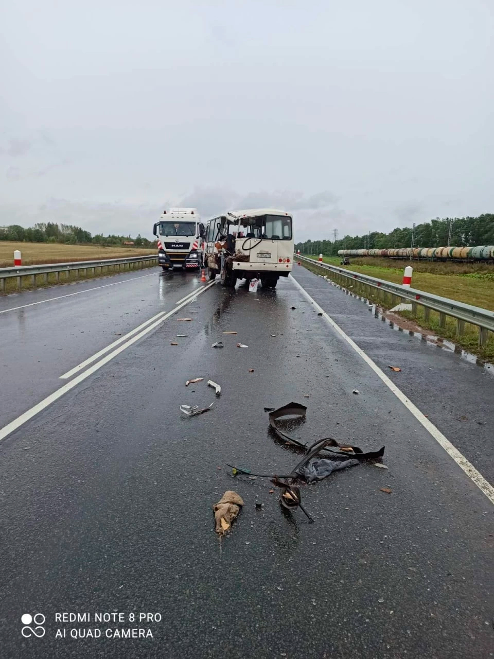 На кадрах с места ДТП видно, что автобусу оторвало кусок кузова. К счастью, ДТП обошлось без пострадавших, добавили в дорожном управлении. Сейчас поврежденные машины уже убрали с дороги, и движение по трассе восстановлено.