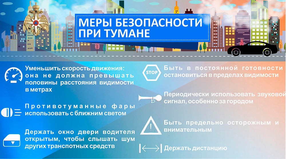 - пытаться проскочить полосу тумана в низине на дороге. Именно на этом участке могут быть скрыты туманом предметы и люди;