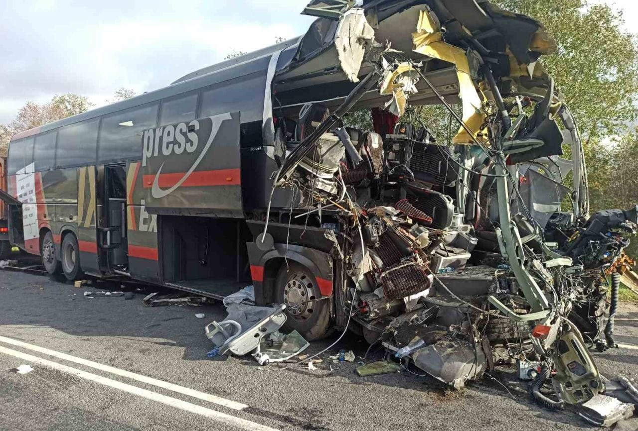 На трассе «Нарва» грузовик протаранил международный автобус с пассажирами. Фото