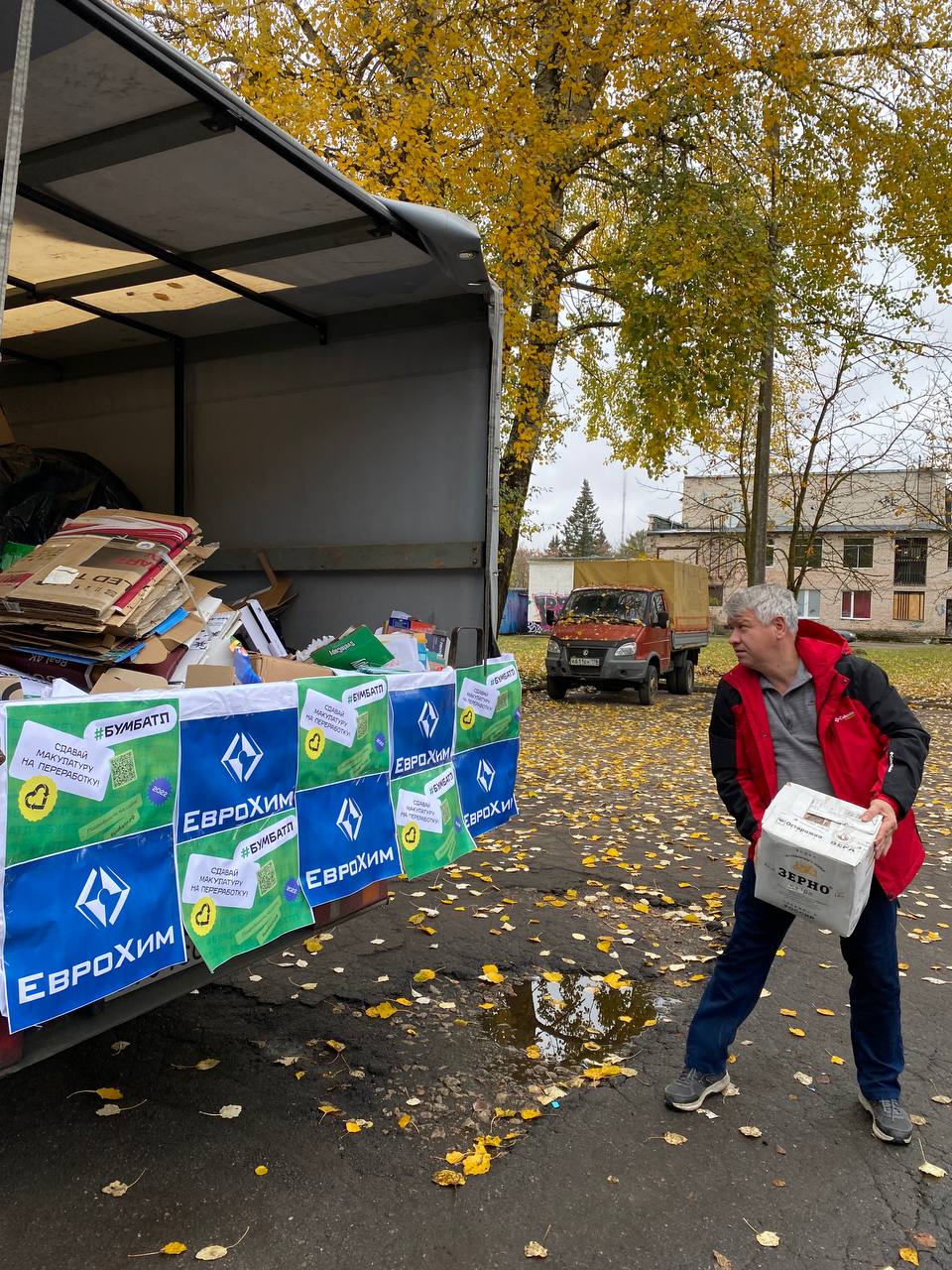 «ЕвроХим» организовал в Кингисеппе сбор макулатуры в рамках Всероссийской акции #Бумбатл. Возле учебного центра «Фосфорит» был развернут специальный мобильный пункт, куда каждый желающий мог принести бумажное вторсырье.