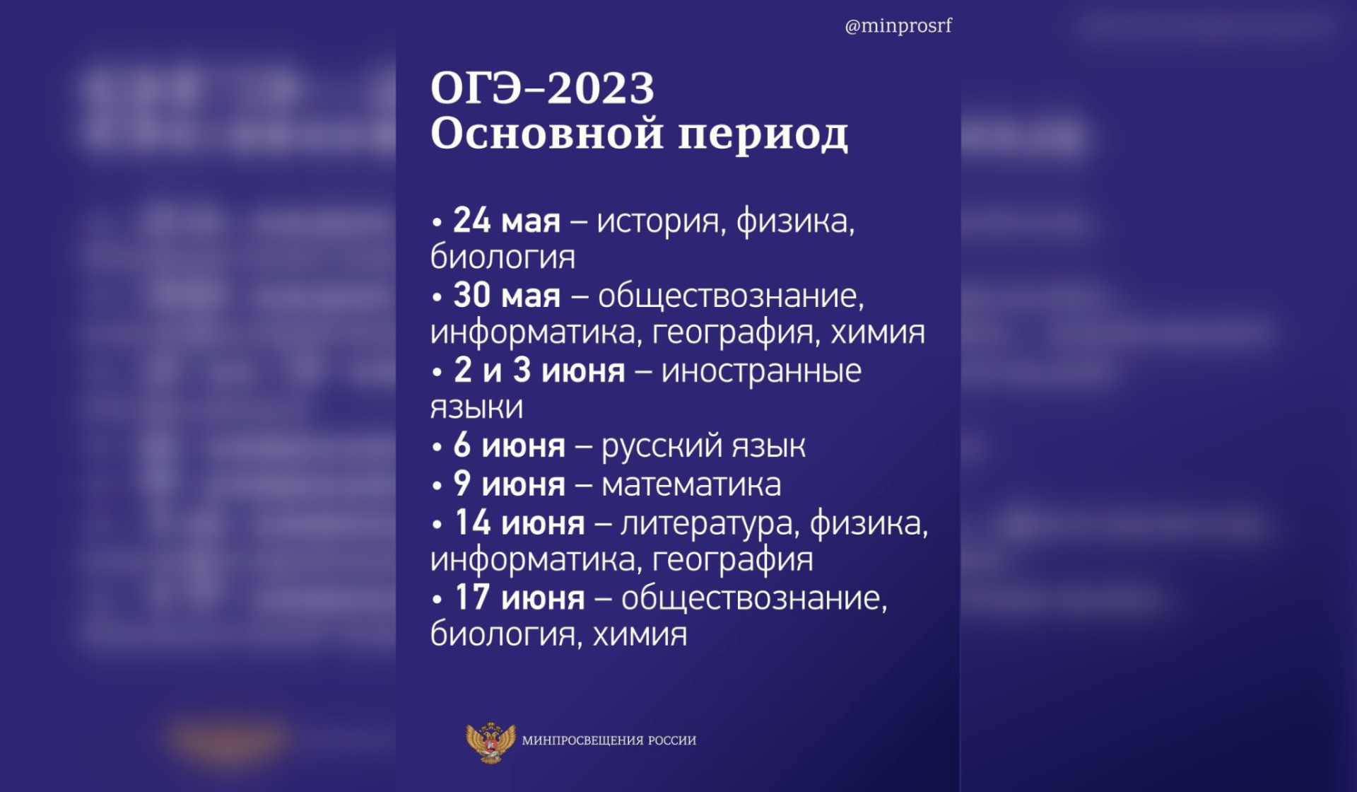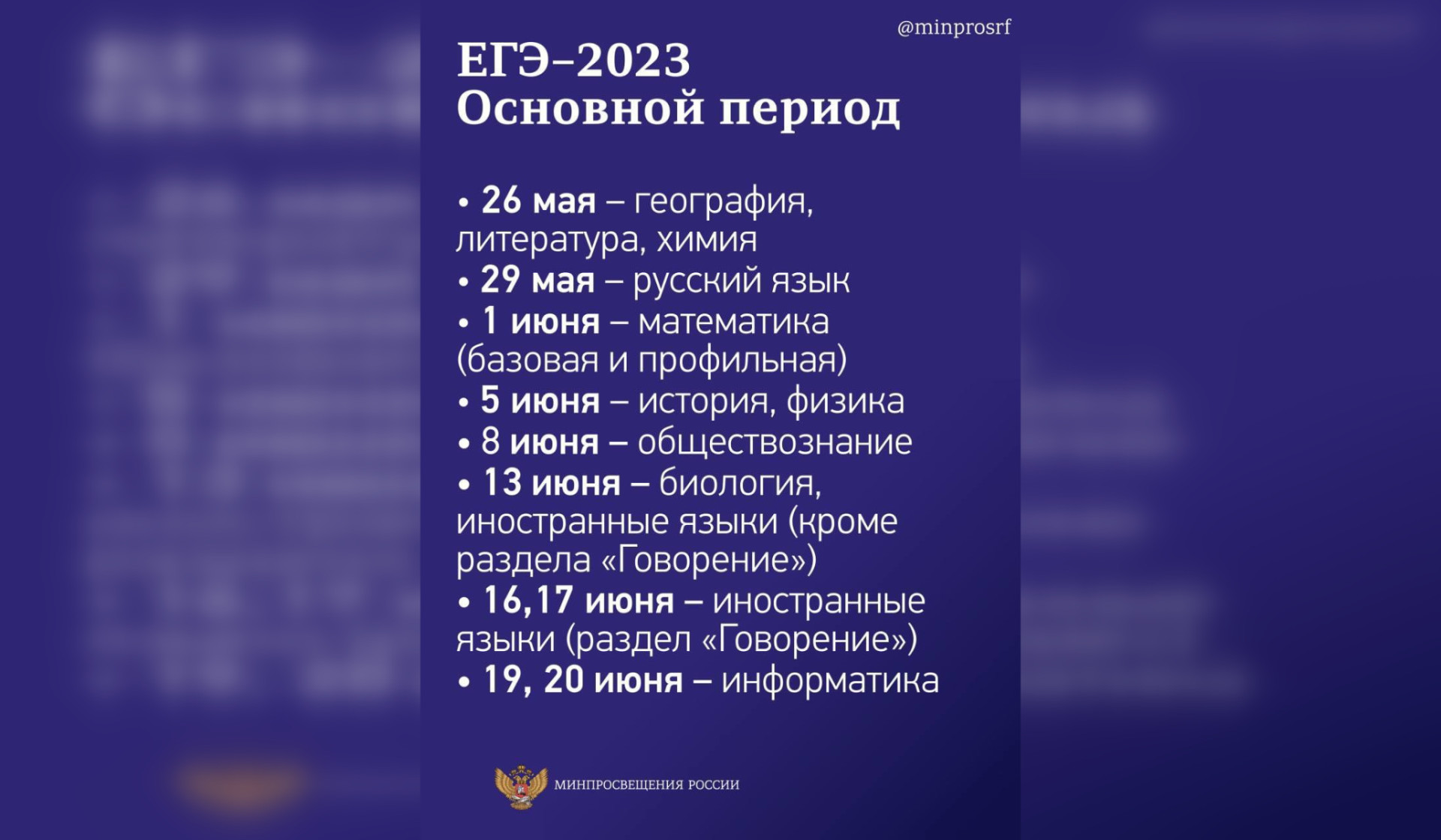 Расписание Единого и Общего государственного экзаменов на 2023 утвердили в Минпросвещения и Рособрнадзоре. Об этом сообщил комитет образования Ленинградской области в Telegram, пишет Online47.