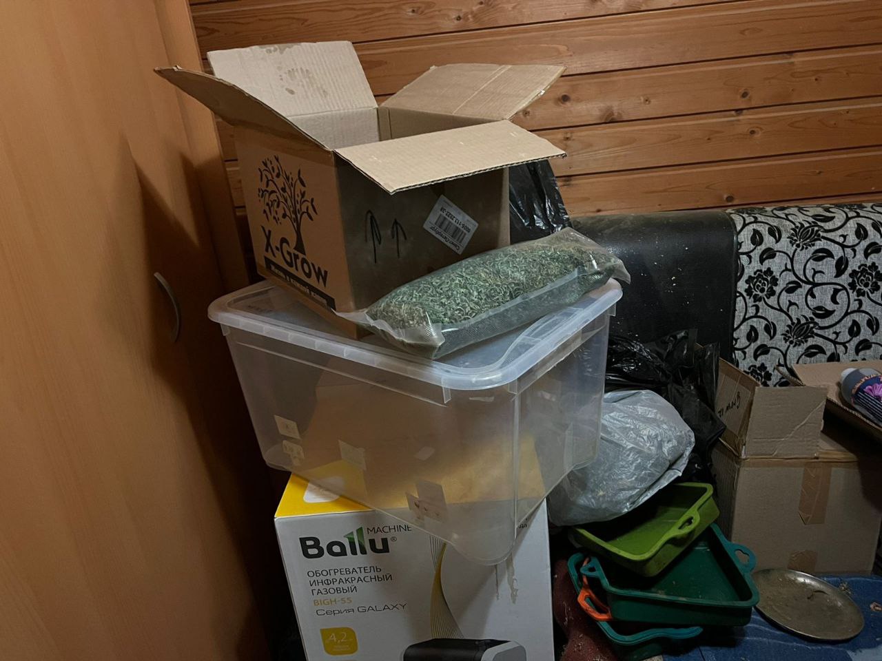 В ходе расследования уголовного дела сотрудники таможни установили адрес, где выращивали, культивировали и изготавливали марихуану и гашиш. При обыске частного жилого дома оперативники обнаружили 49 кустов предположительно конопли, а также разложенную для высушивания на полиэтиленовой пленке в разных частях дома марихуану и упакованный в брикеты гашиш. Также сотрудники нашли станок, который предположительно использовался для прессования пластинок из гашиша.