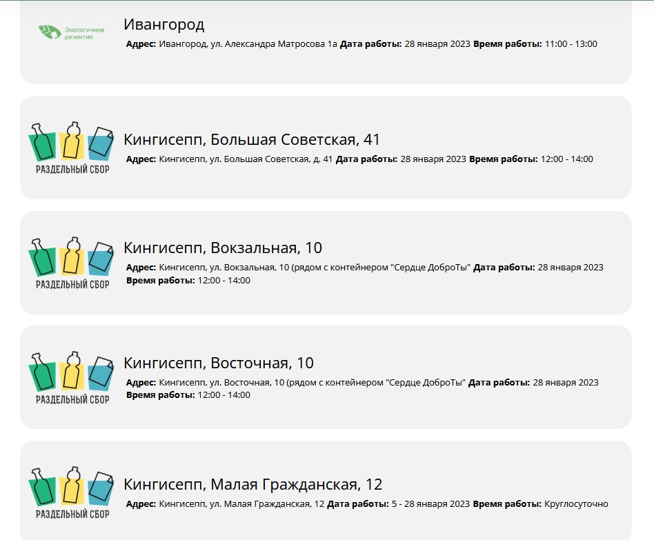 на официальном сайте акции. Сбор пройдет в пяти районах Ленинградской области - Всеволожском, Выборгском, Гатчинском, Киришском и Кингисеппском. В Санкт-Петербурге будет работать 64 точки. Каждый пункт сбора хвойных работает по своему графику. Ленинградцам советуют внимательно изучить информацию на сайте.