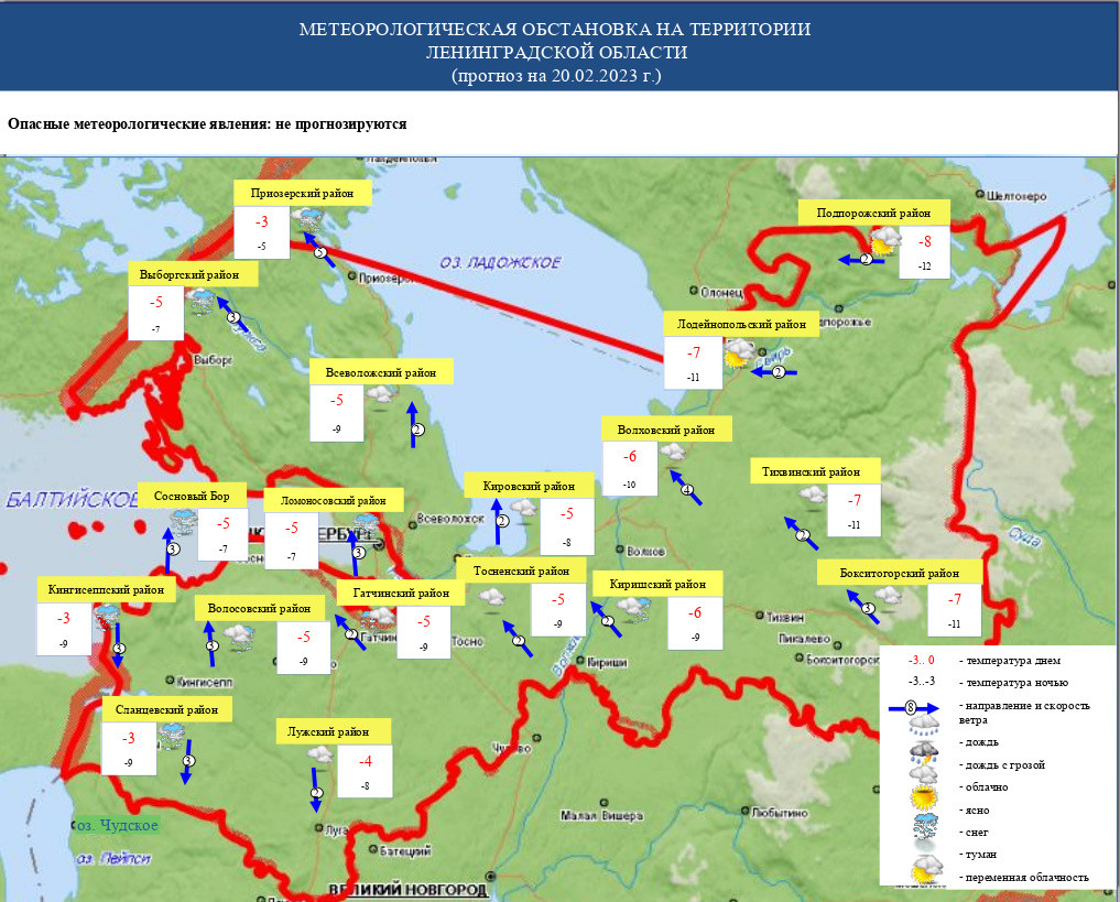 Облачная с прояснениями погода, осадки и морозы до -16 градусов ожидают жителей Ленинградской области в понедельник, 20 февраля. Об этом Online47 сообщили в пресс-службе Главного управления МЧС России по 47 региону со ссылкой на данные ФГБУ "Северо-Западное УГМС".