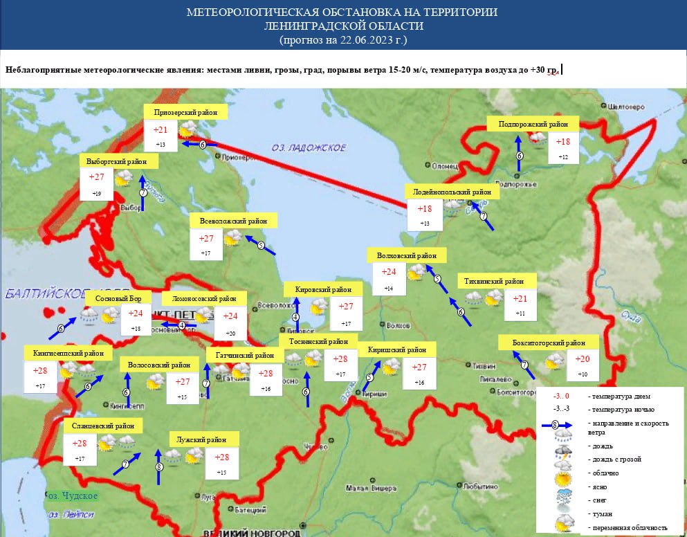 В Ленобласти 22 июня днем до 30 градусов тепла
